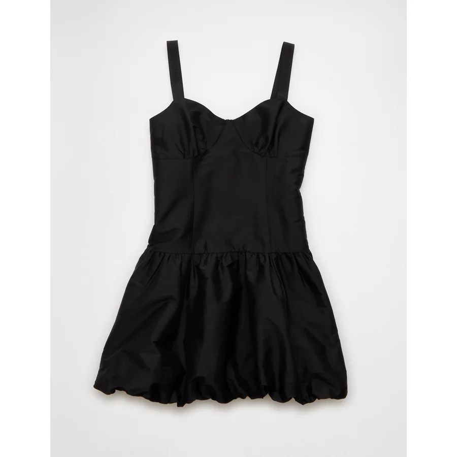 AE Corset Drop Waist Bubble Mini Dress – Black