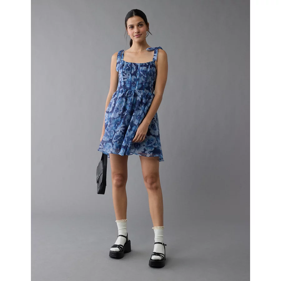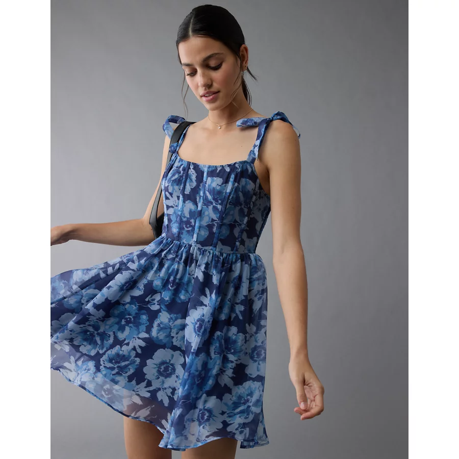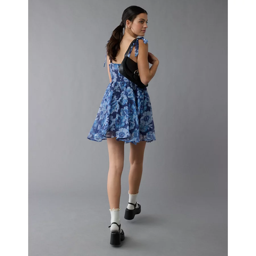 AE Corset Tie Strap Floral Mini Dress – Blue