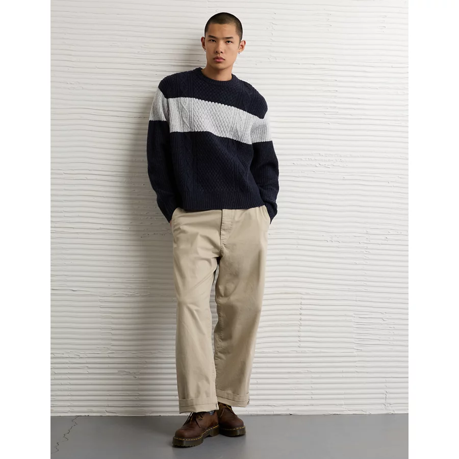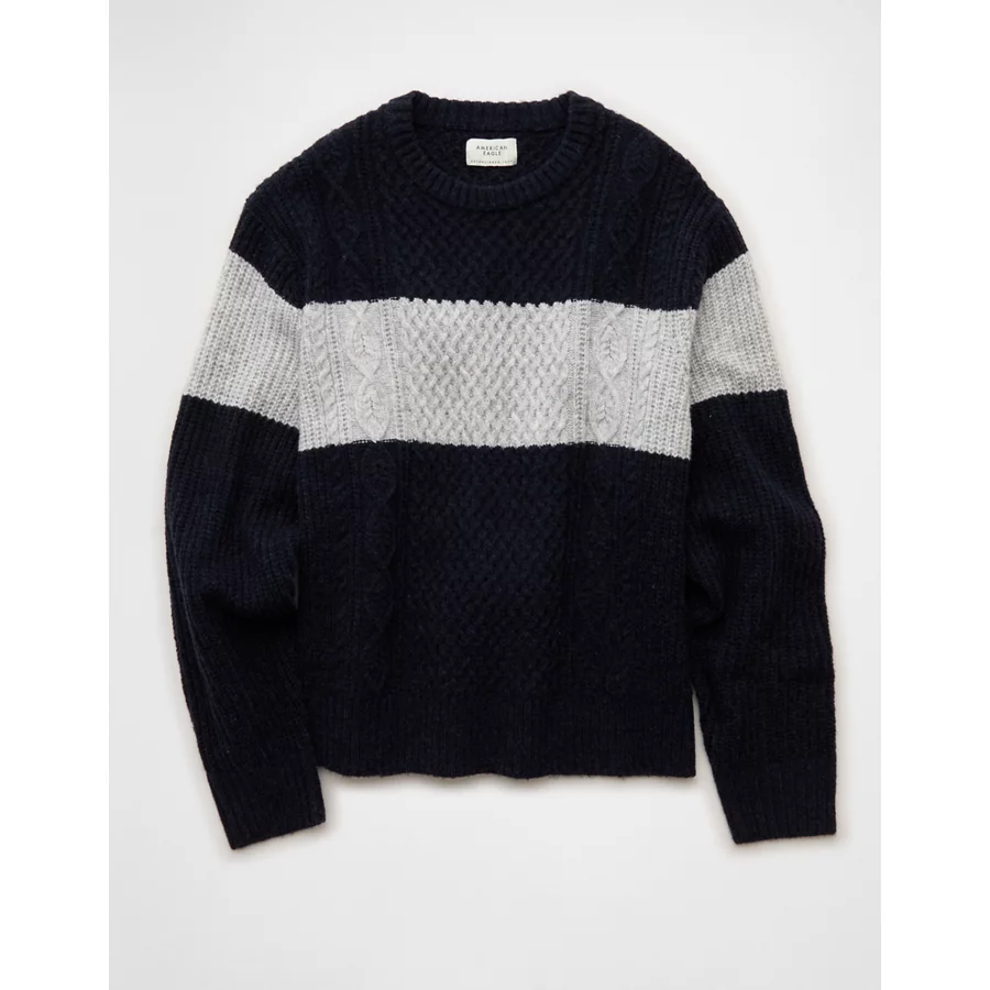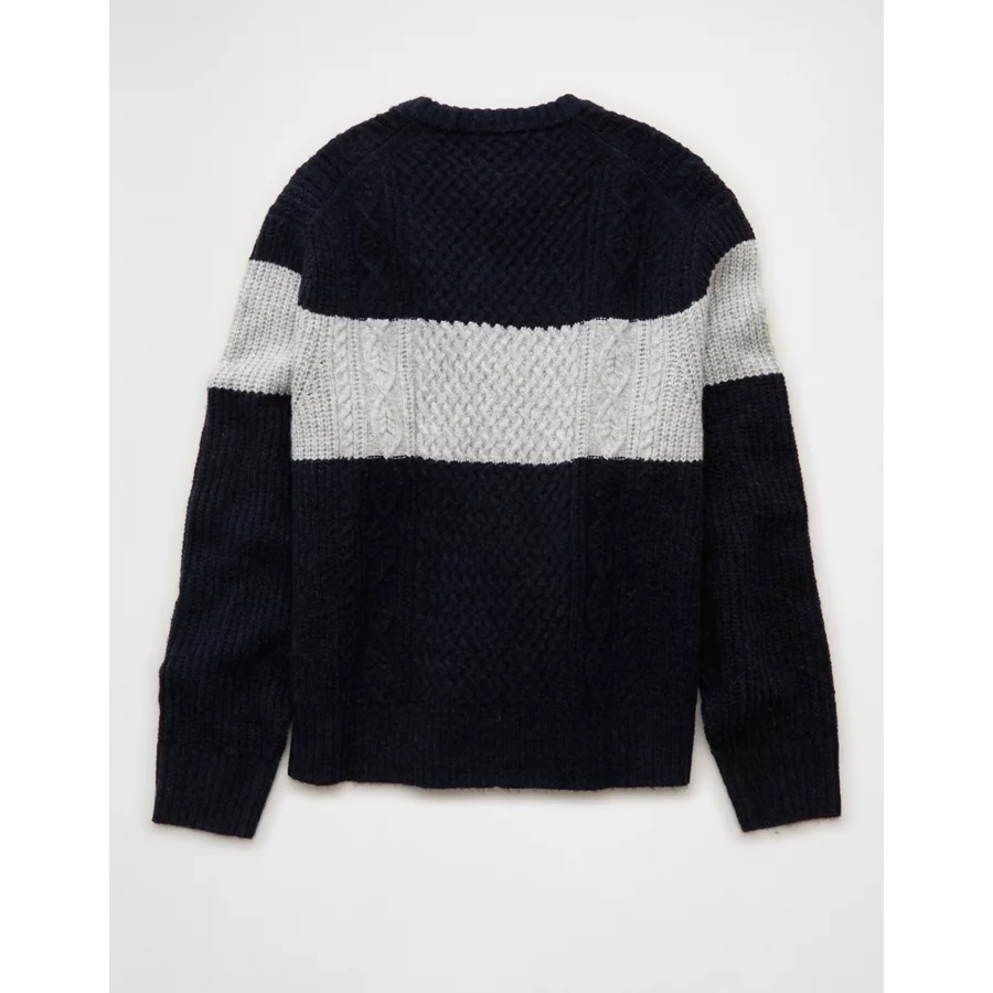AE Cozy Cabin Chest Stripe Sweater – Navy