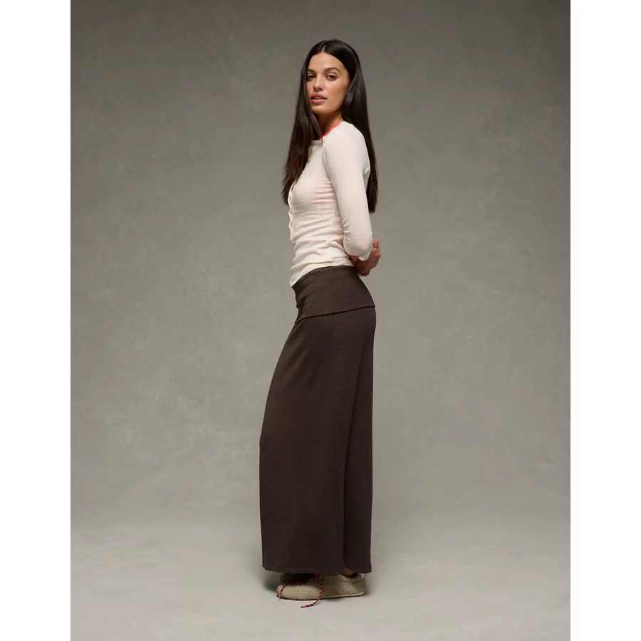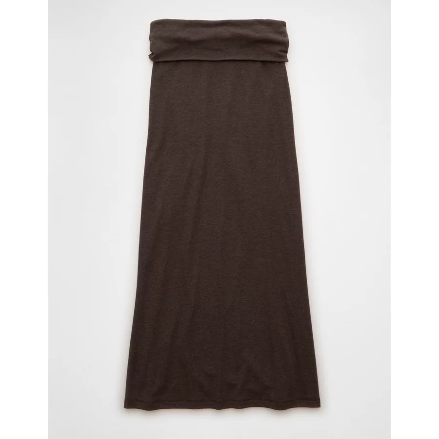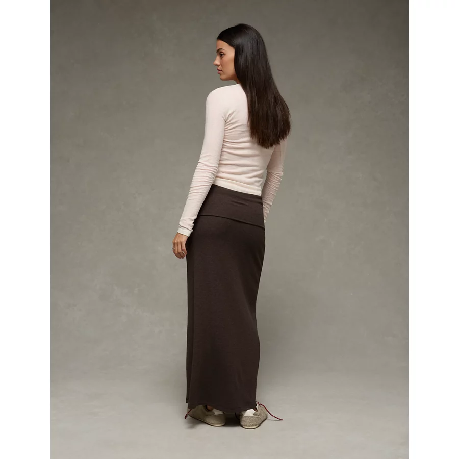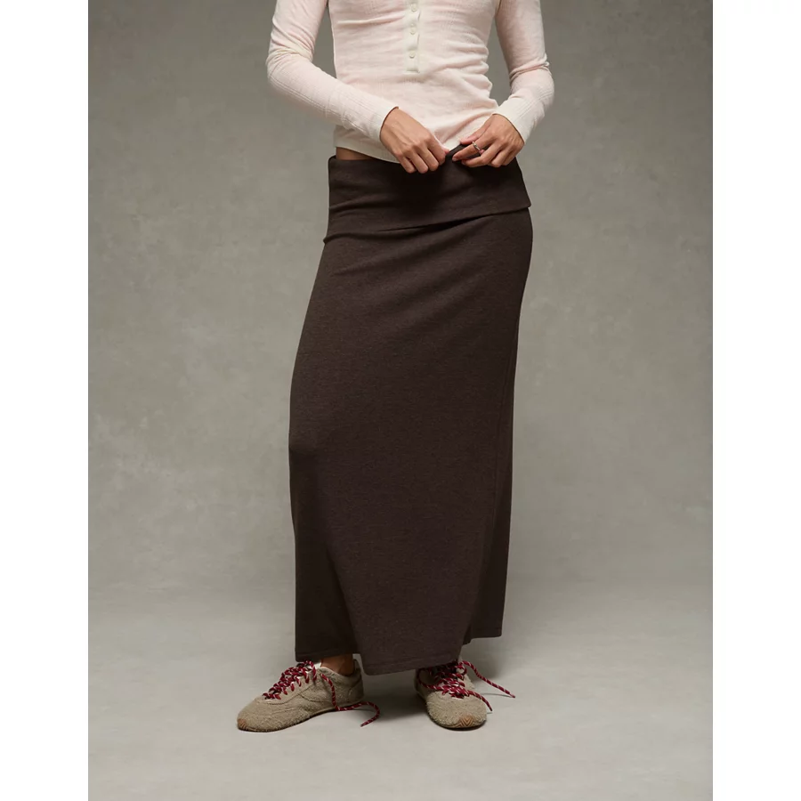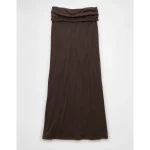 AE Cozy High-Waisted Foldover Maxi Skirt – Chocolate