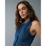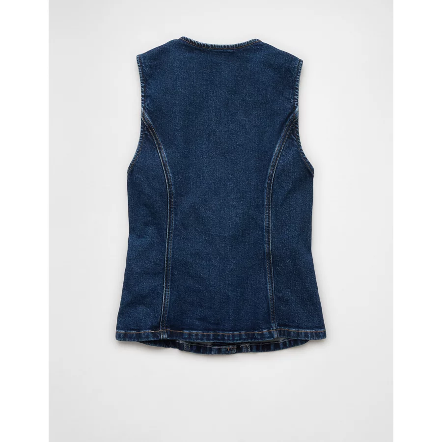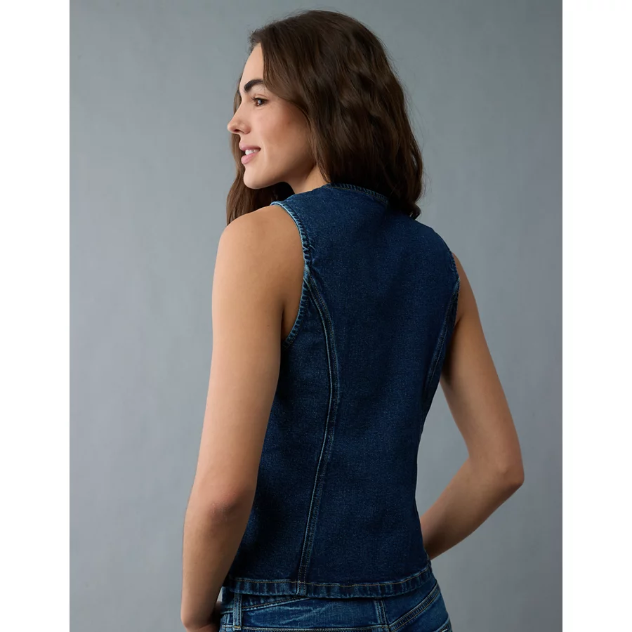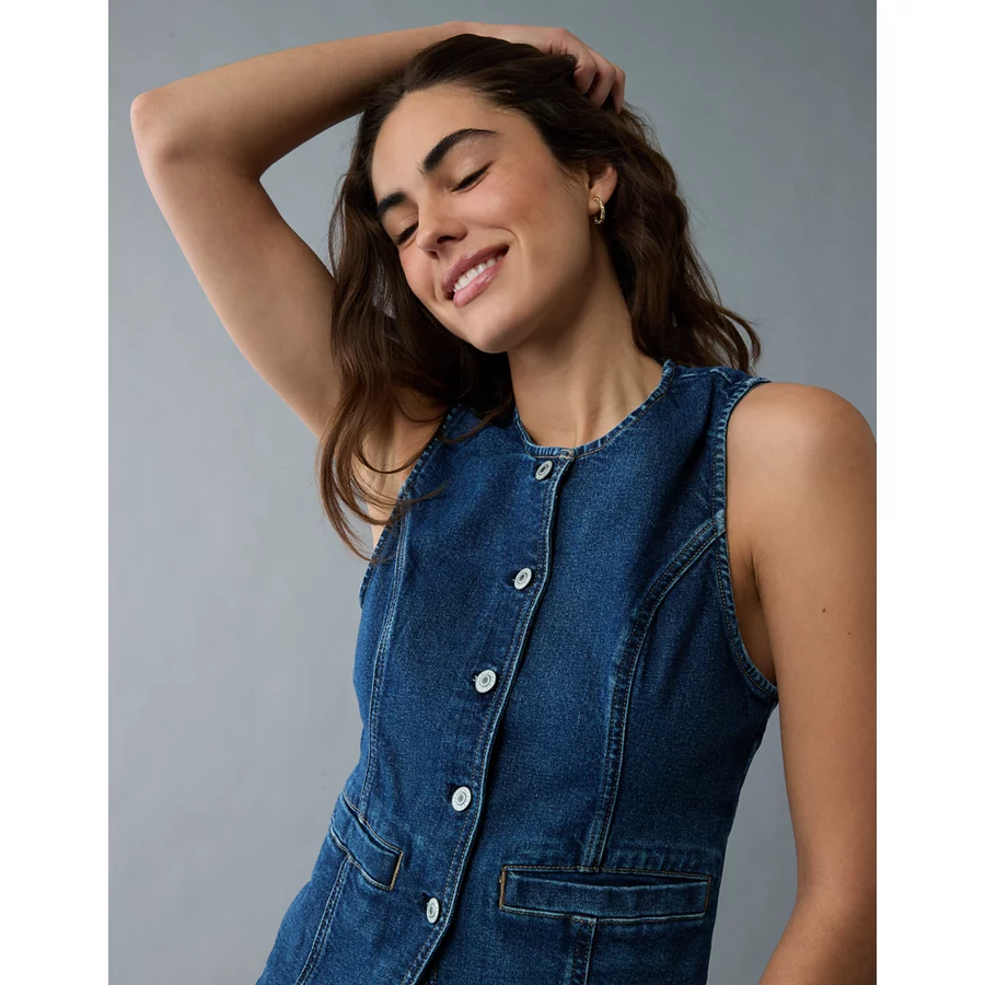 AE Crew Neck Button-Up Denim Vest – Dark Wash