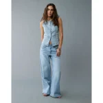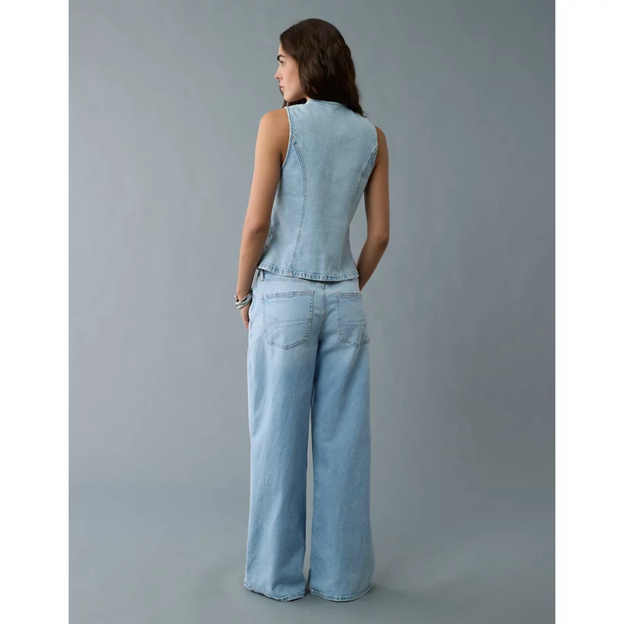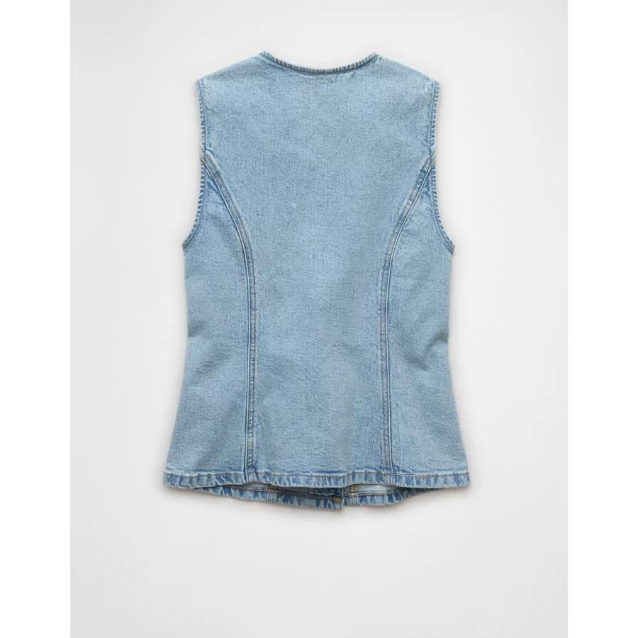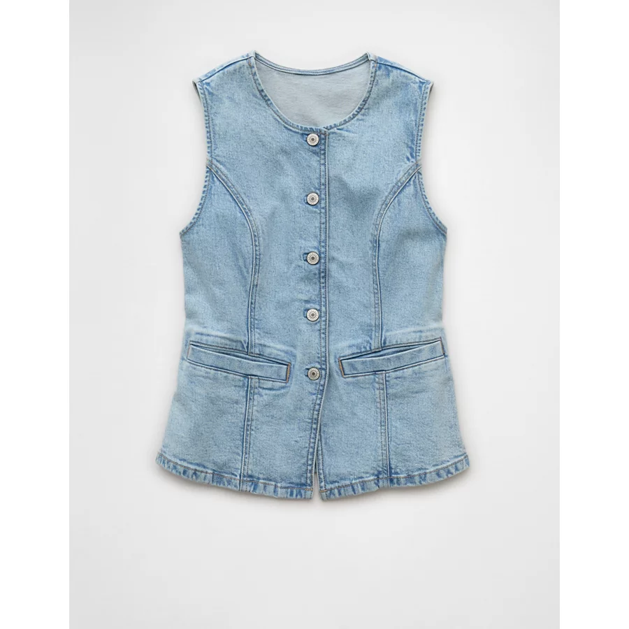 AE Crew Neck Button-Up Denim Vest – Light Wash