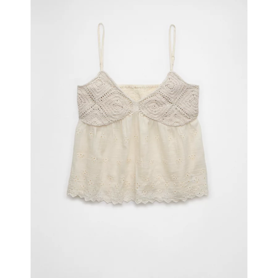 AE Crochet Eyelet Cami – Cream