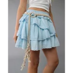 AE Asymmetrical Ruffle Maxi Slip Dress – Light Blue