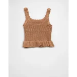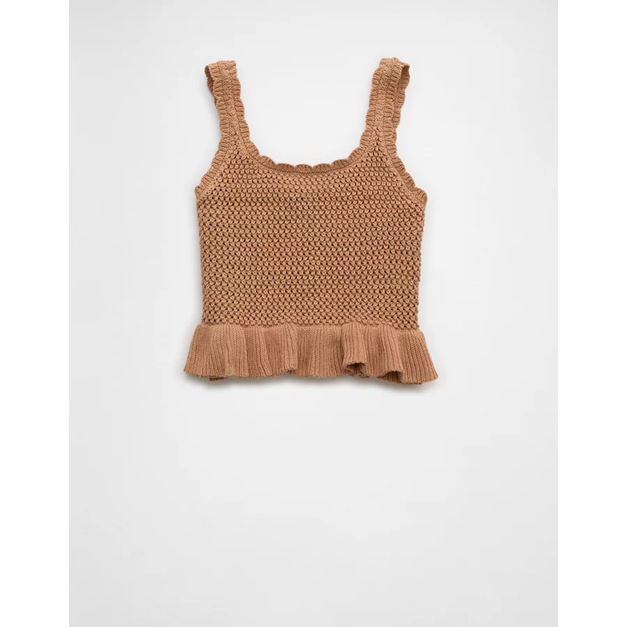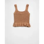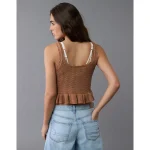 AE Crochet Peplum Tank Top – Medium Brown