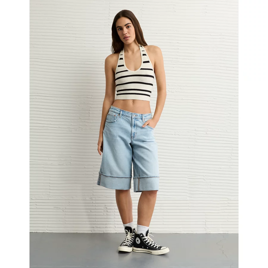 AE 11″ Dreamy Drape Stretch High-Waisted Jort – Light Tinted Wash