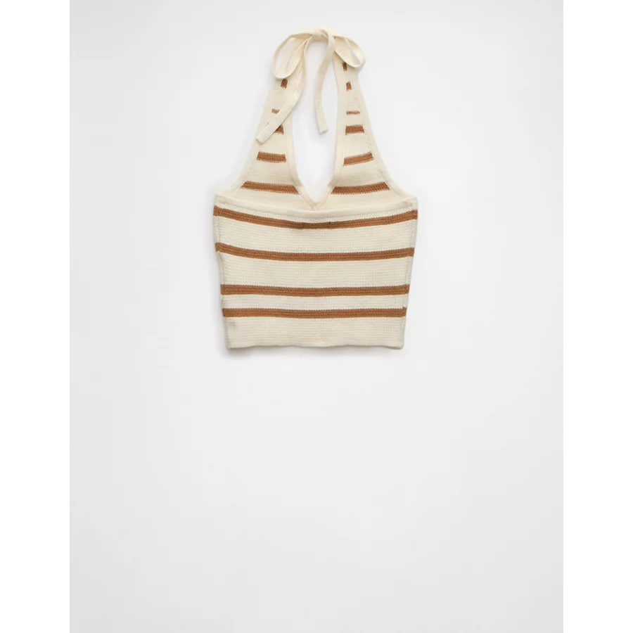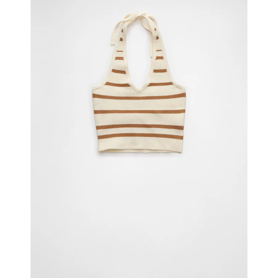 AE Cropped Striped Sweater Halter Top – Tan