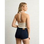 AE Cropped Striped Sweater Halter Top - Navy
