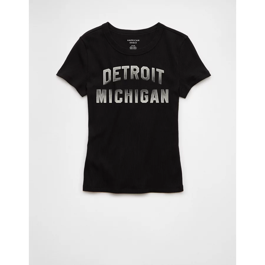 AE Detroit Michigan Graphic Hey Baby Tee – Black