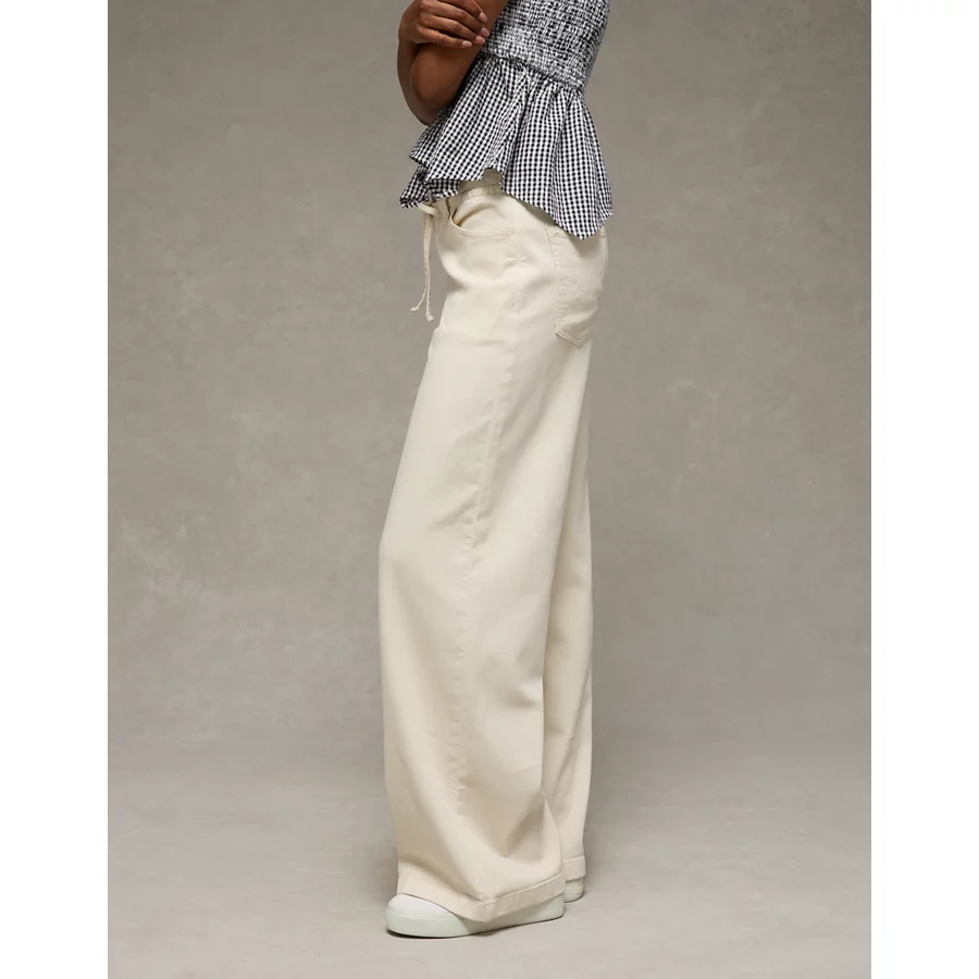 AE Dreamy Drape Stretch Low-Rise Ultra Wide-Leg Pant – Bone Khaki