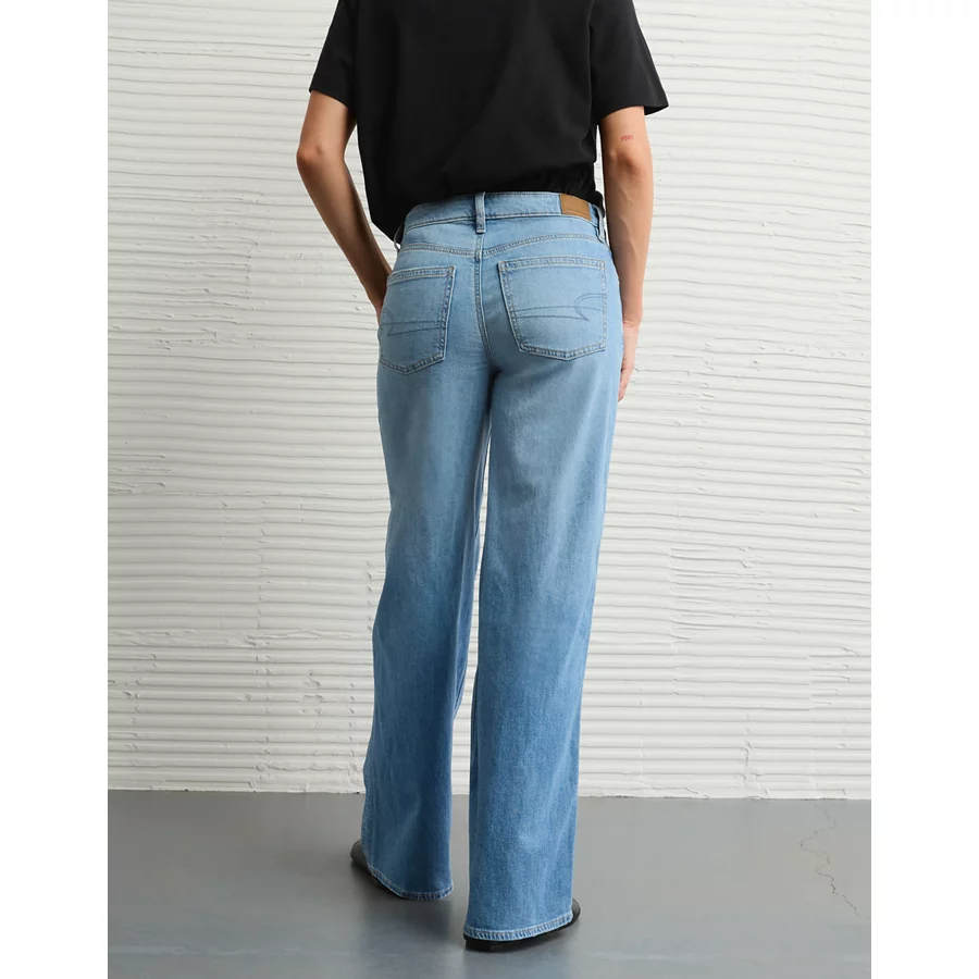 AE Dreamy Drape Stretch Ripped Low-Rise Baggy Wide-Leg Jean – Indigo Skylight Destroy