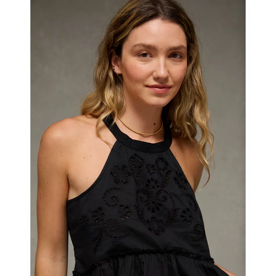 AE Asymmetrical Ruffle Maxi Slip Dress – Light Blue