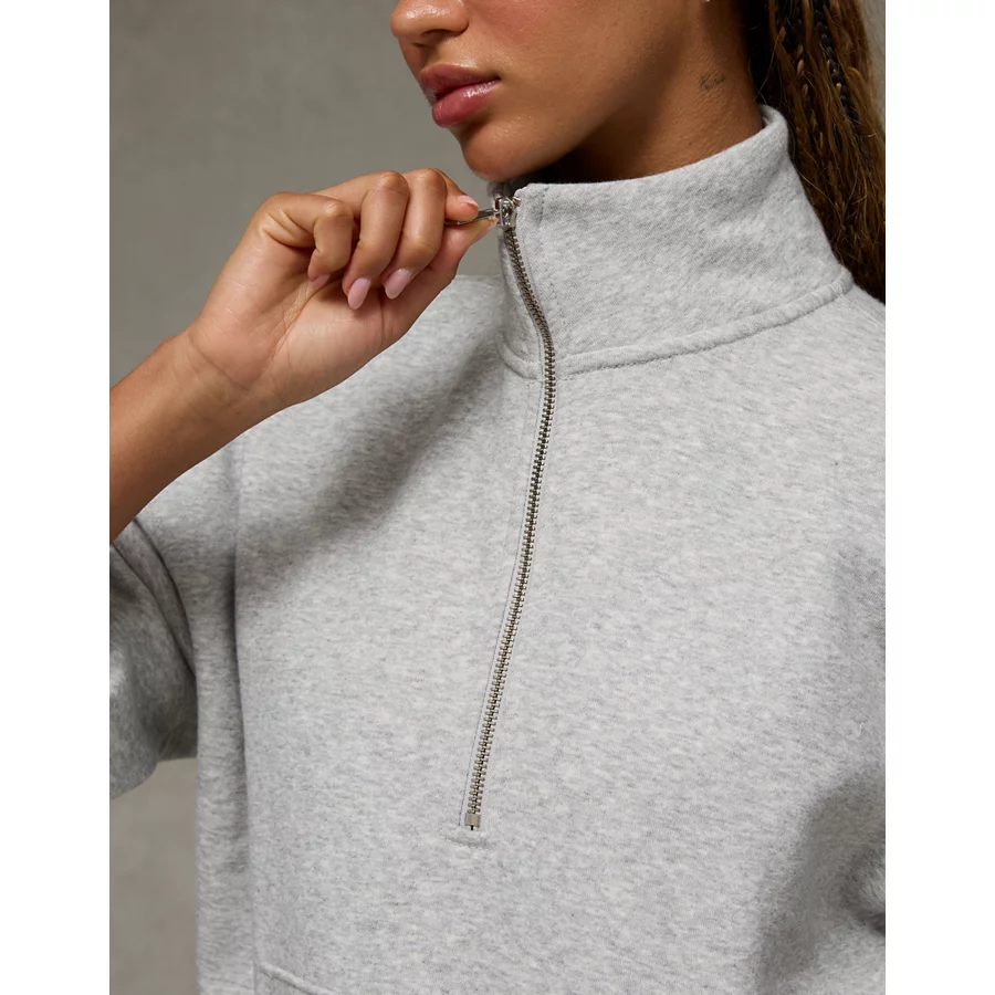 AE Everyday Luxe Quarter Zip Sweatshirt – Medium Heather Gray