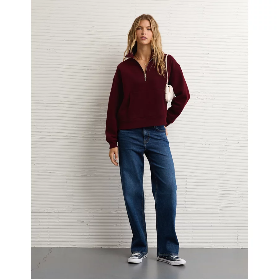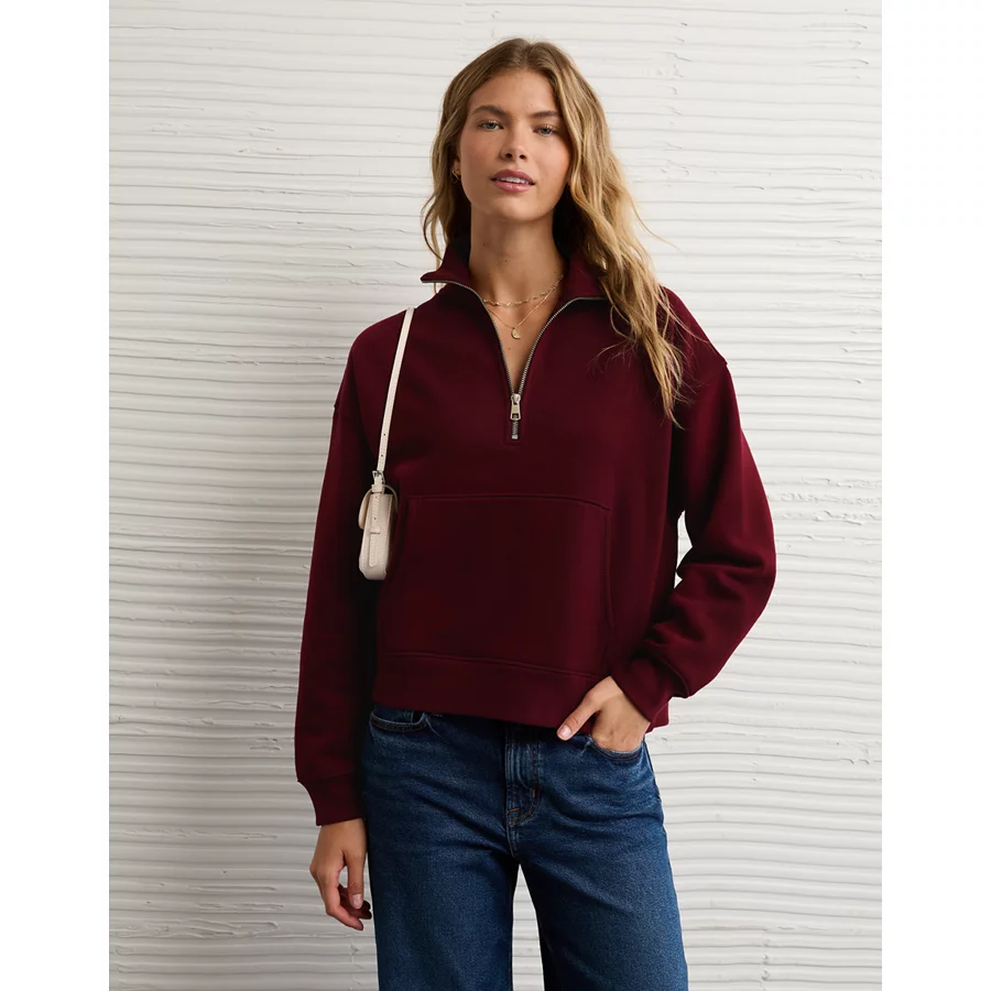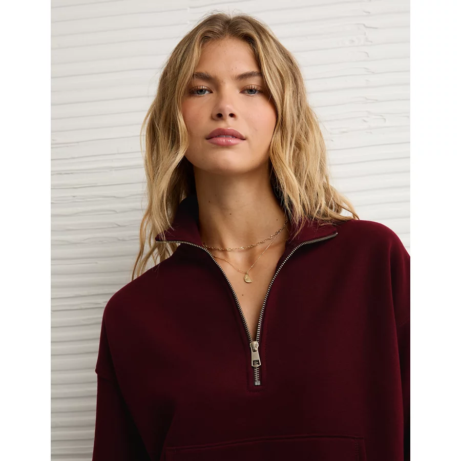 AE Everyday Luxe Quarter-Zip Sweatshirt – Preppy Red