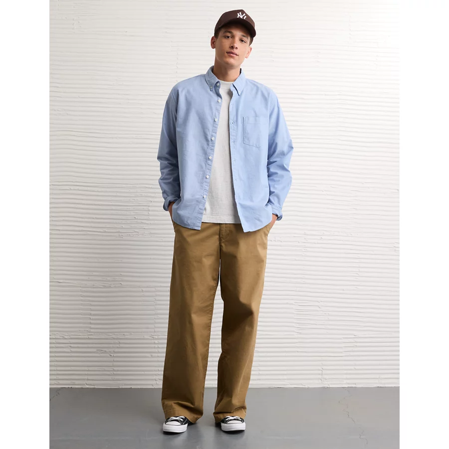 AE Everyday Relaxed Fit Poplin Button-Up Shirt - Red