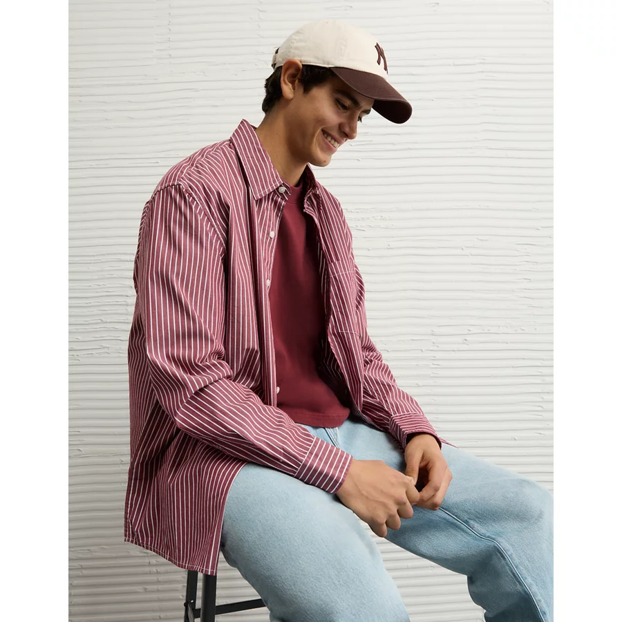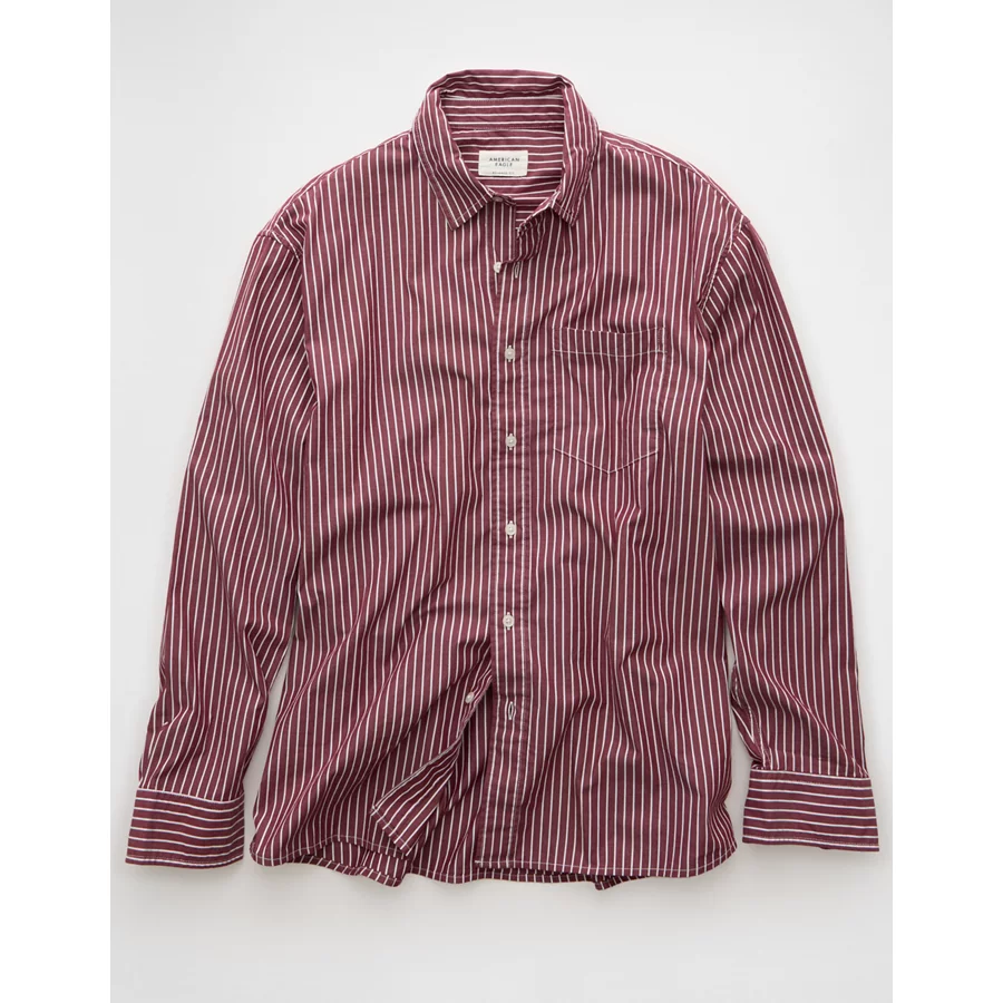AE Everyday Relaxed Fit Poplin Button-Up Shirt – Red