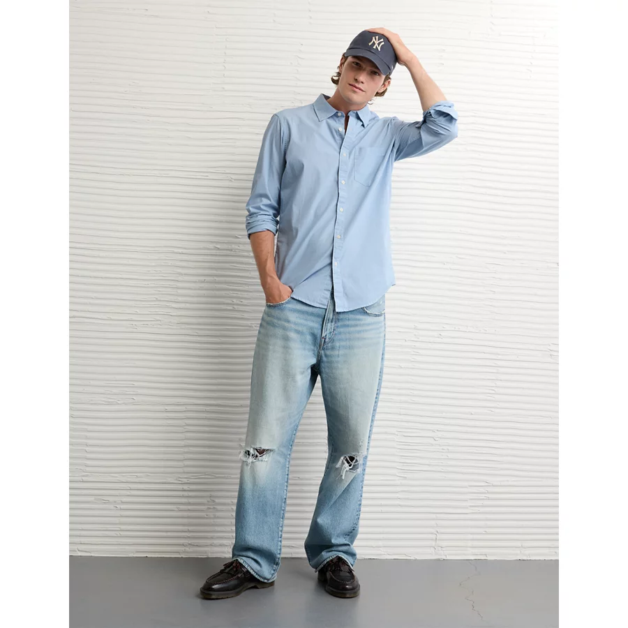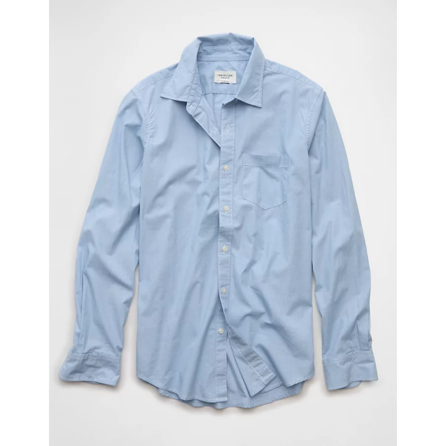 AE Everyday Slim Fit Poplin Button-Up Shirt – Blue