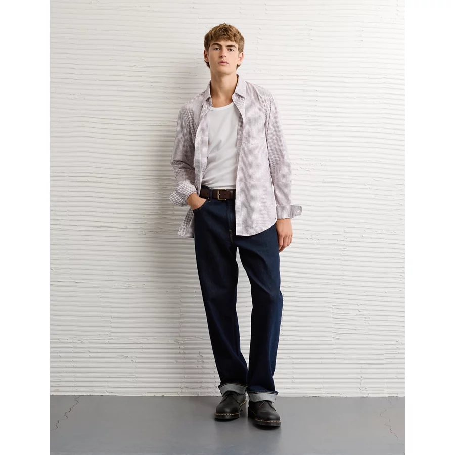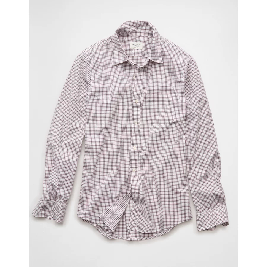 AE Everyday Slim Fit Poplin Plaid Button-Up Shirt – Burgundy