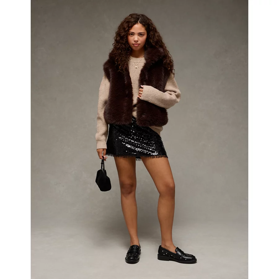 AE Faux Fur Vest – Brown