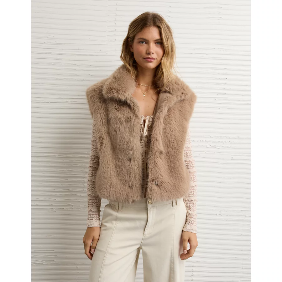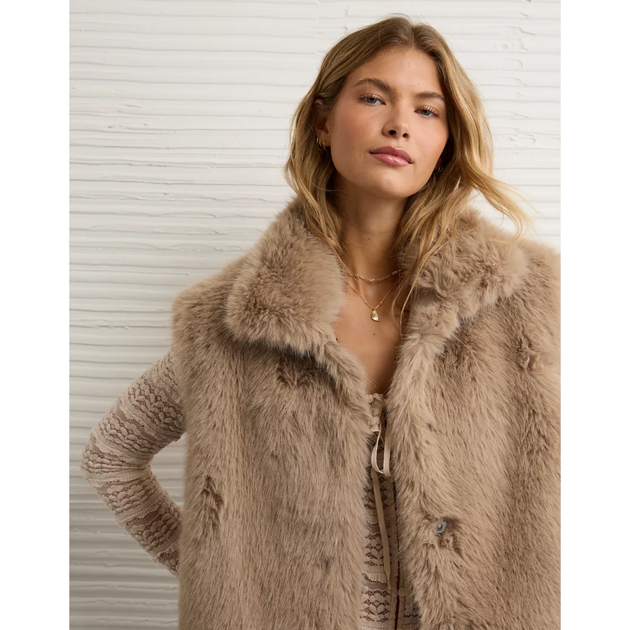 AE Faux Fur Vest – Cream