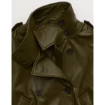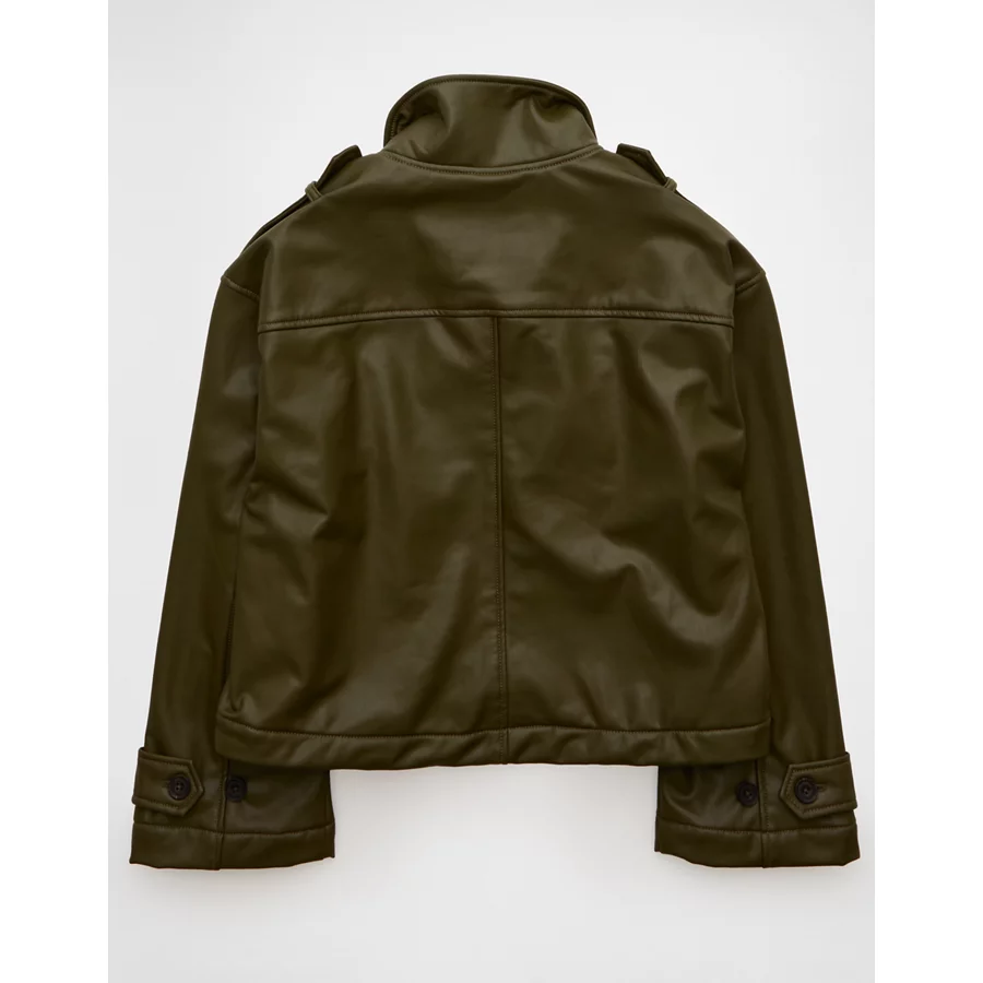 AE Faux Leather Cropped Bomber Jacket - Olive
