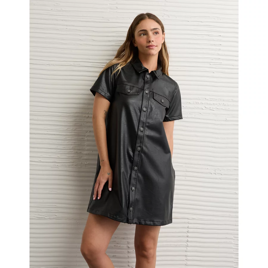 Vegan leather with stretch 96% Polyester, 4% SpandexHand washImported Low rise | 11 3/4 front rise15 inseam28 leg opening