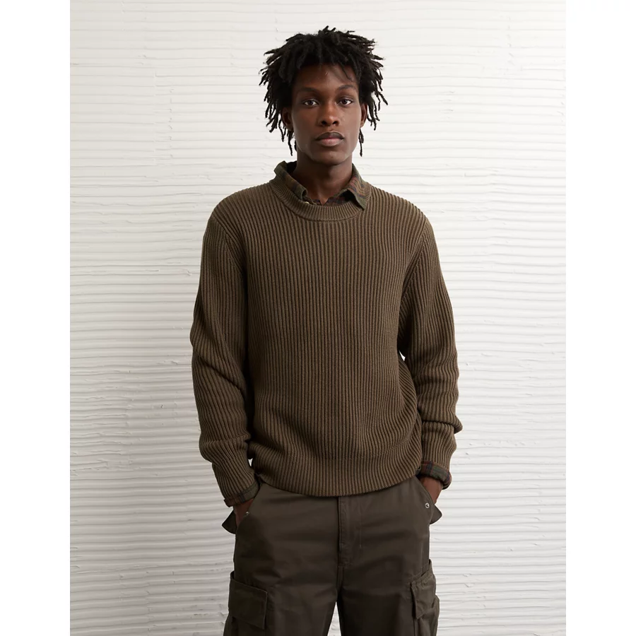 AE Fisherman Crew Neck Sweater – Camo Green