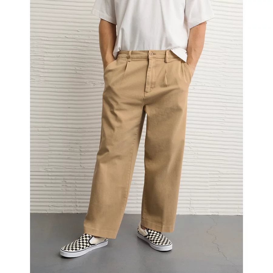AE Flex Loose Cropped Trouser Pant – Khaki