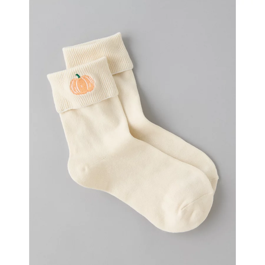 AE Foldover-Cuff Cropped Crew Socks – Cream