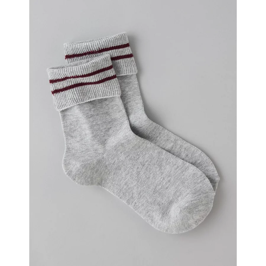 AE Foldover-Cuff Cropped Crew Socks – Dark Heather Gray