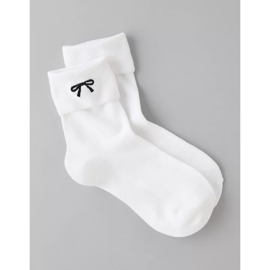 AE Foldover-Cuff Cropped Crew Socks - Cream