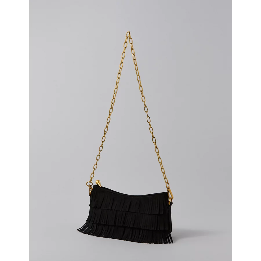 AE Fringed Baguette Bag – Black