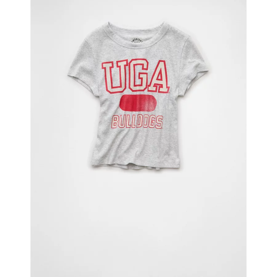 AE Georgia Bulldogs Graphic Cropped Baby Tee – Light Faded Gray