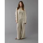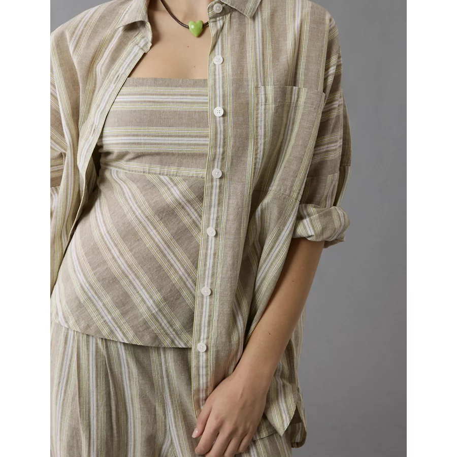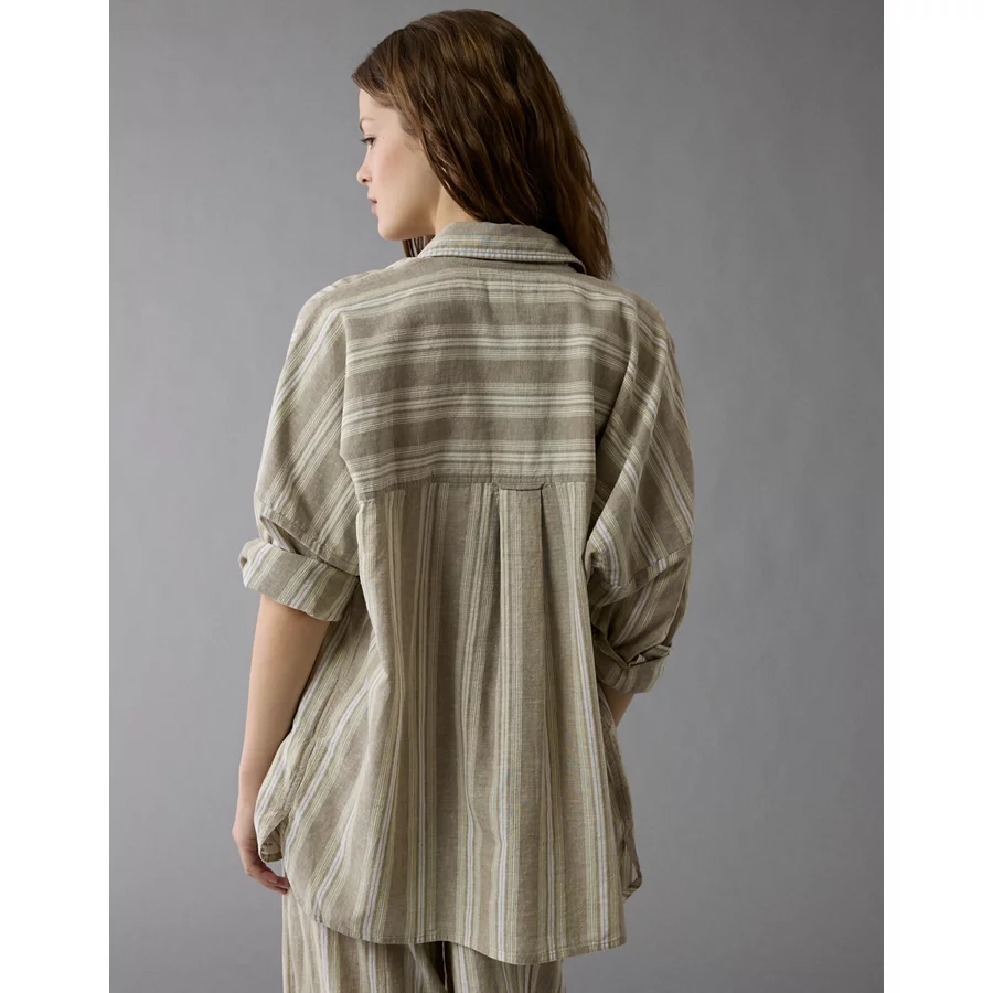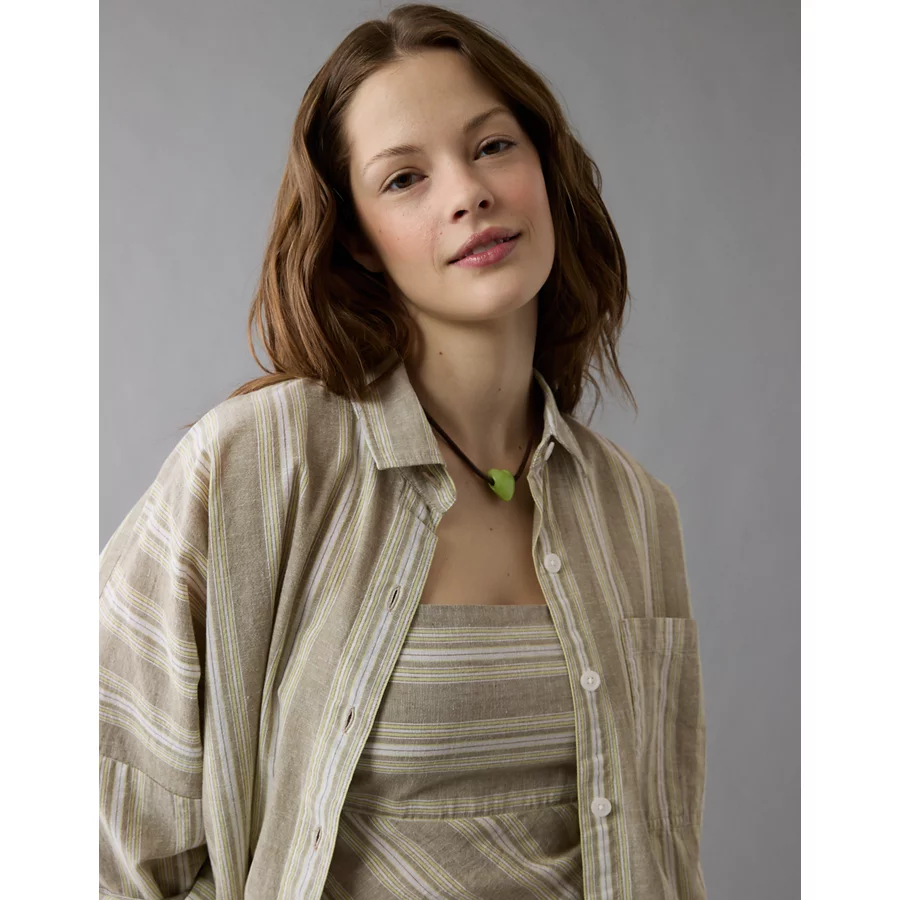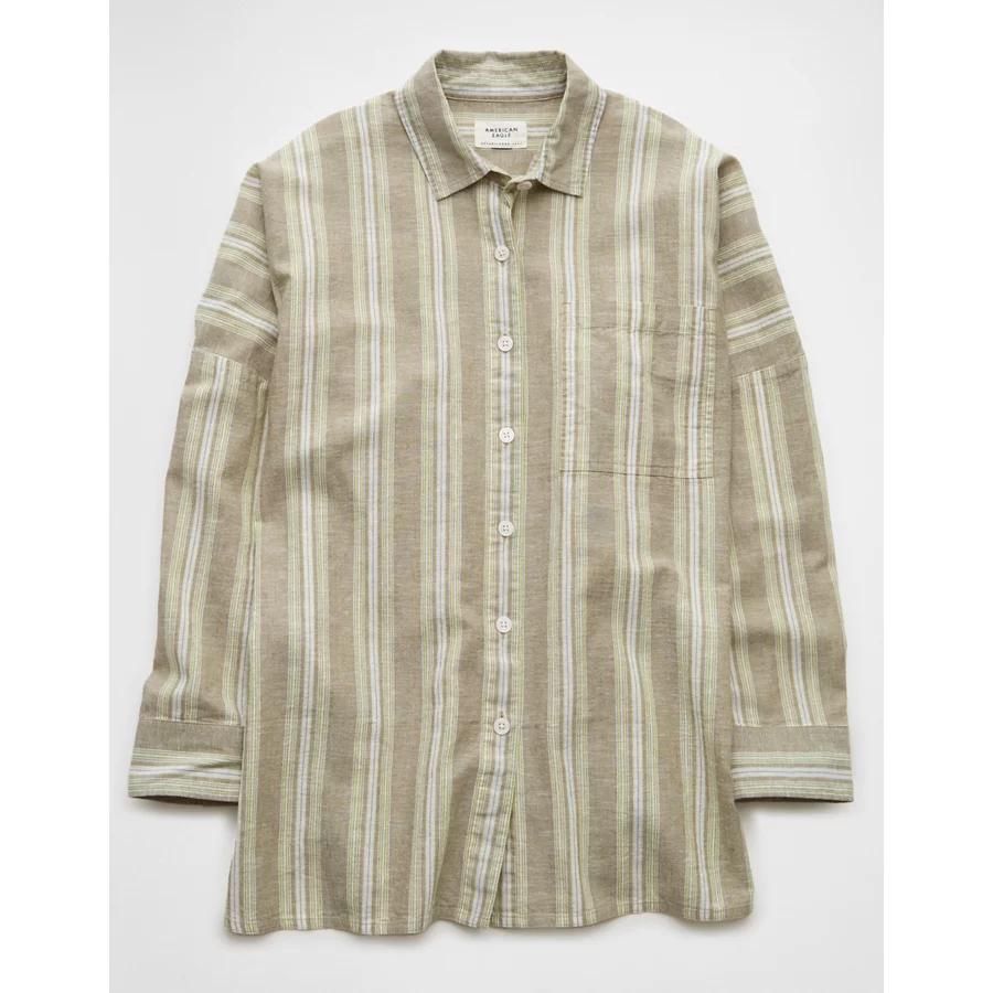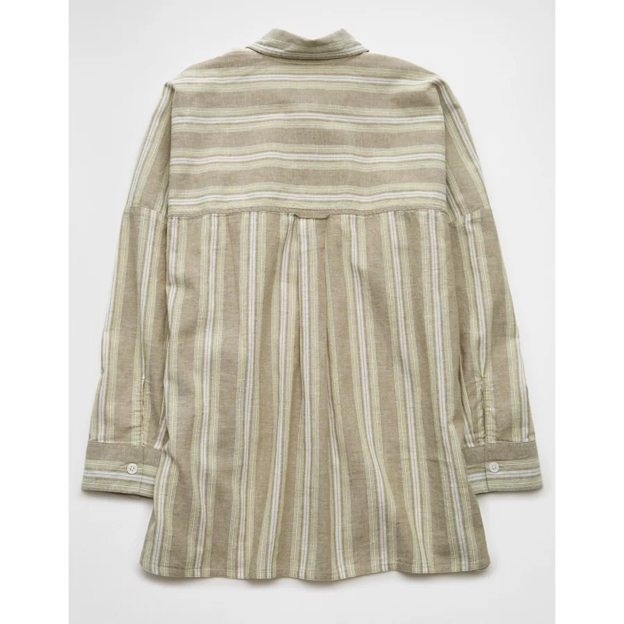 AE Go Big Linen-Blend Oversized Striped Shirt – Olive