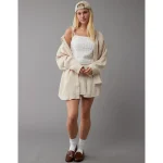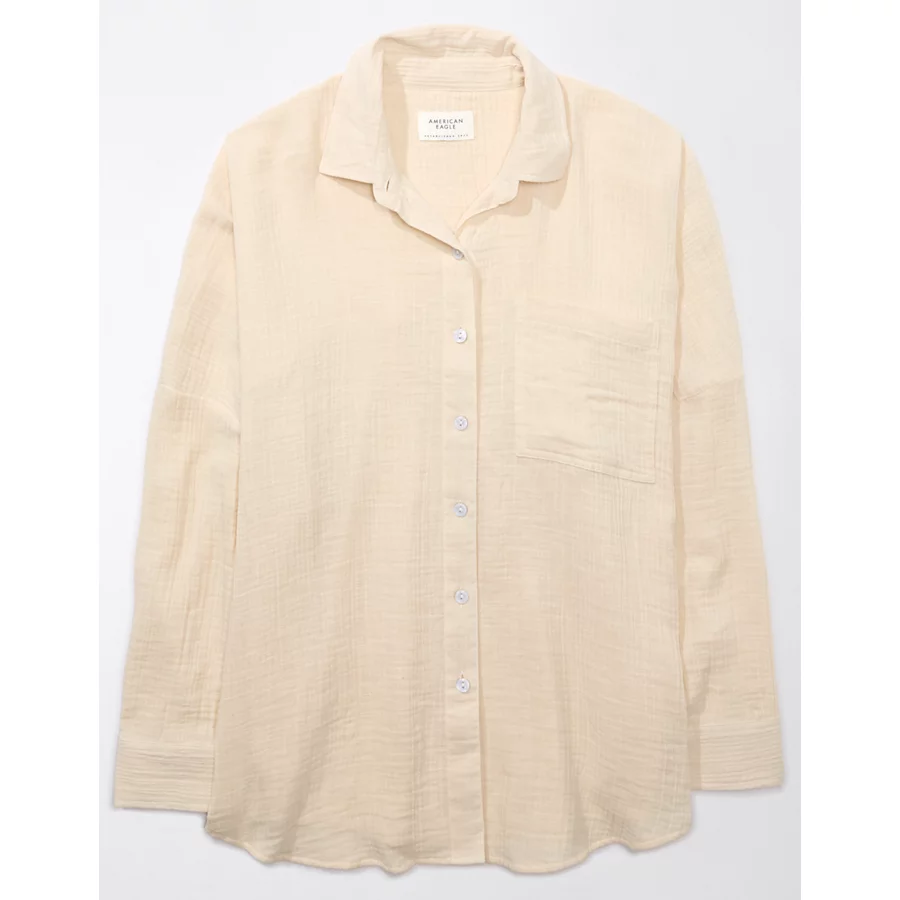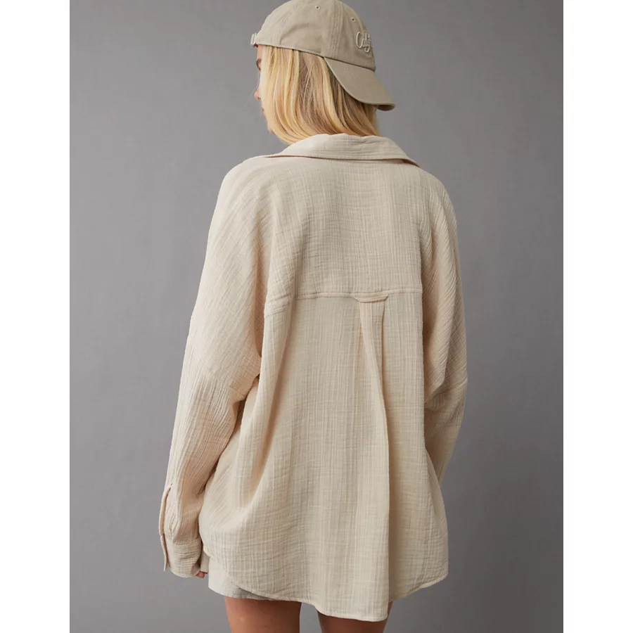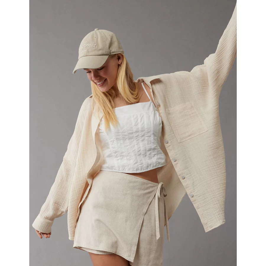 AE Go Big Linen-Blend Oversized Striped Shirt - Pink