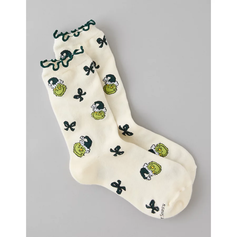 AE Grinch Ruffle Crew Socks – Cream