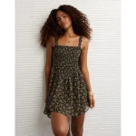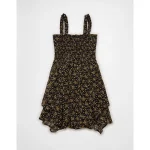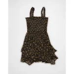 AE Handkerchief Hem Ruffle Floral Mini Dress – Black