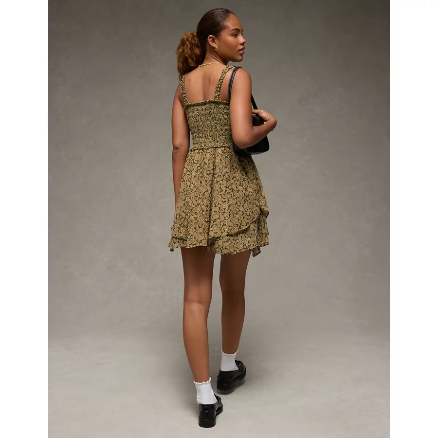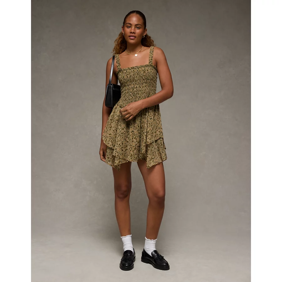 AE Handkerchief Hem Ruffle Floral Mini Dress – Yellow