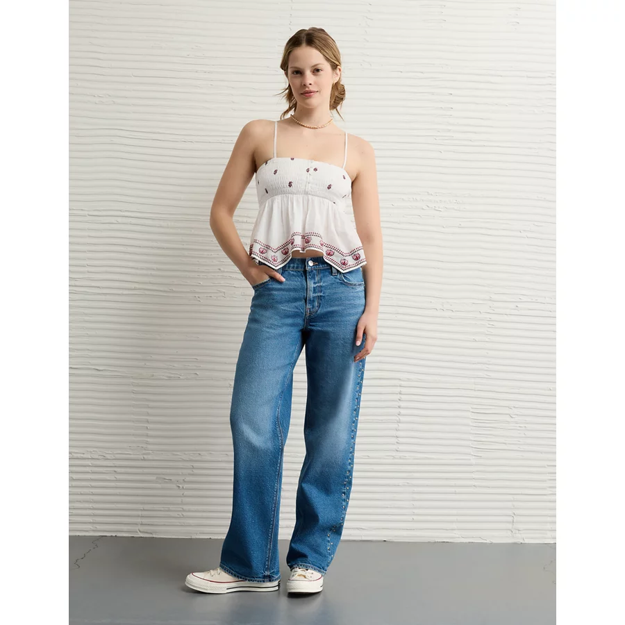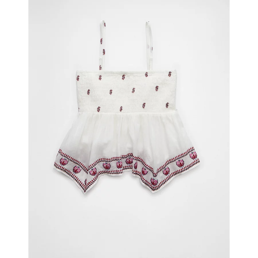 AE Handkerchief Hem Smocked Babydoll Tube Top – Cream