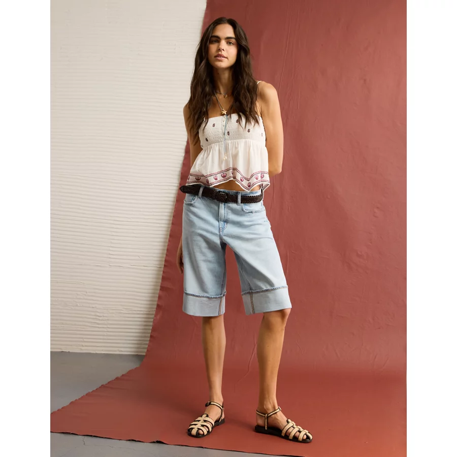 AE 11″ Dreamy Drape Stretch High-Waisted Jort – Light Tinted Wash