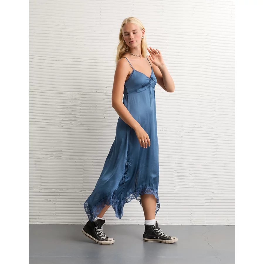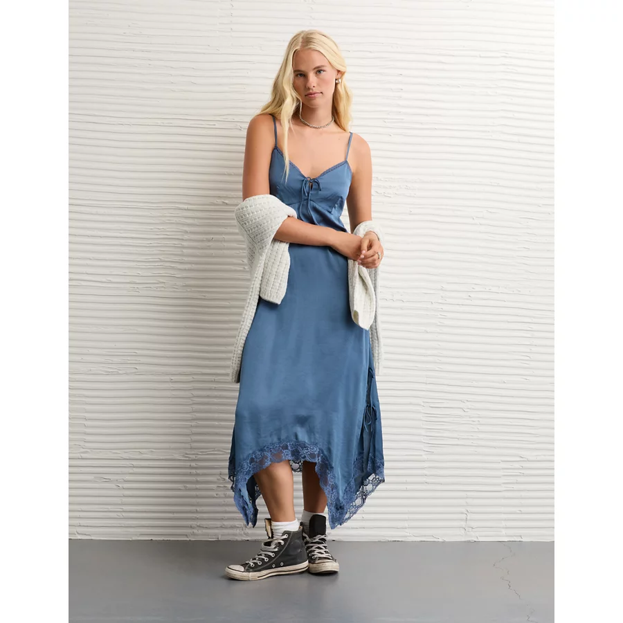 AE Handkerchief Hem Tie Side Midi Slip Dress – Navy