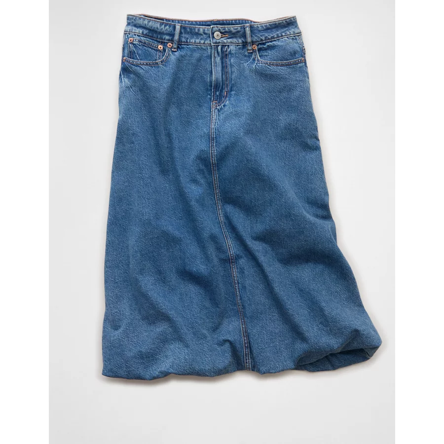 AE High-Waisted Bubble Midi Skirt – Medium Wash