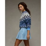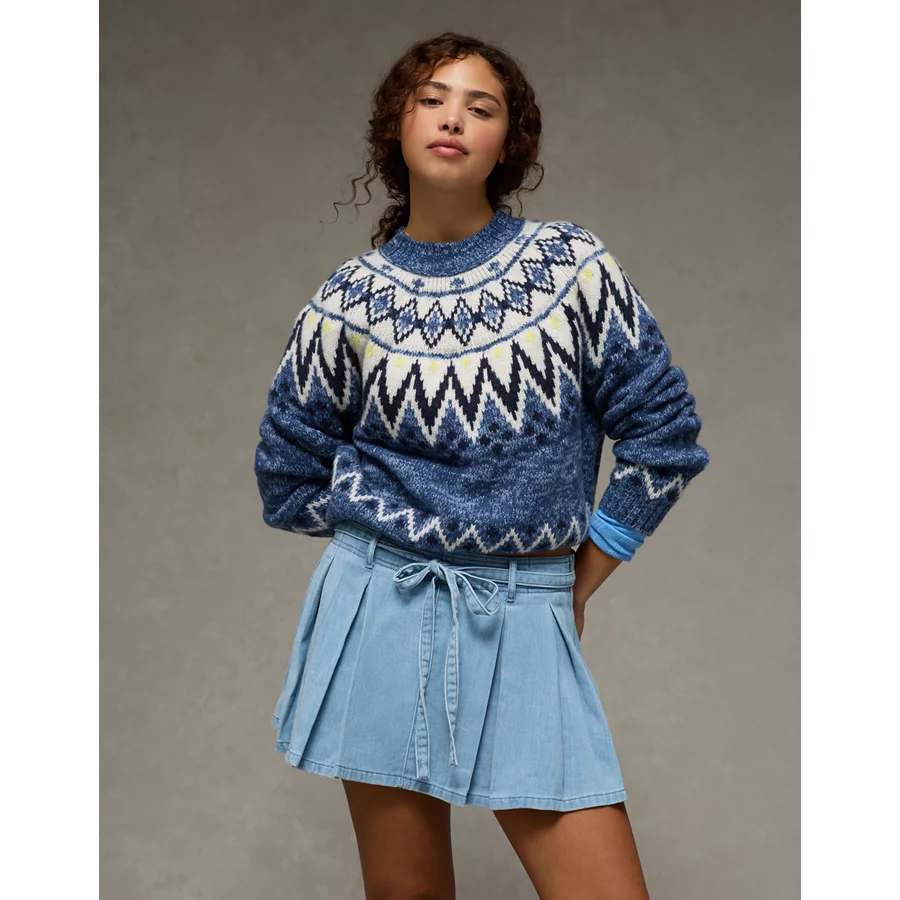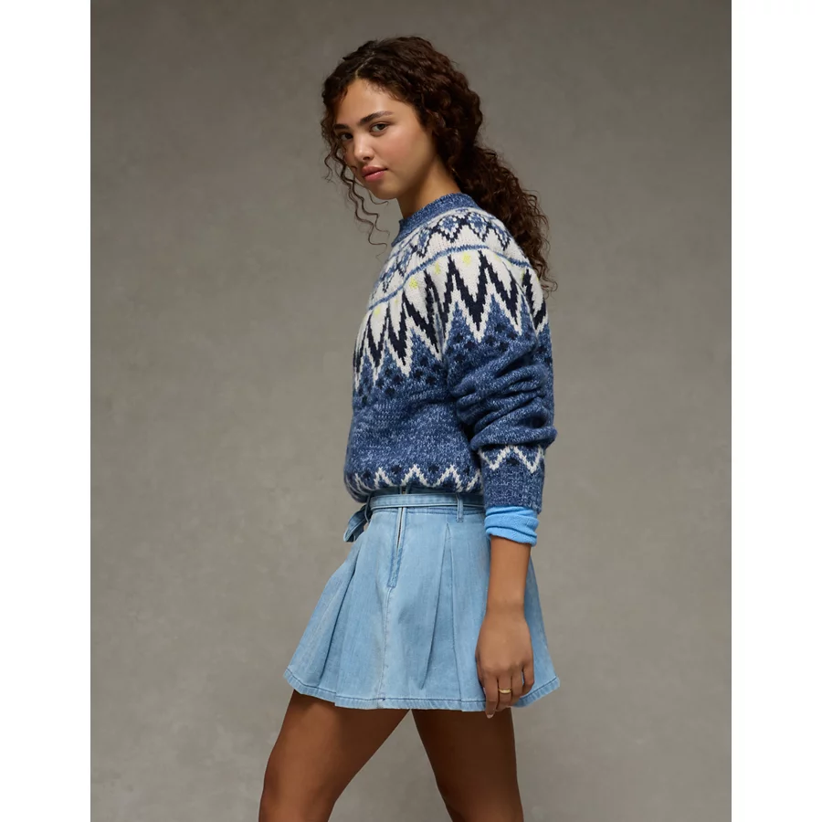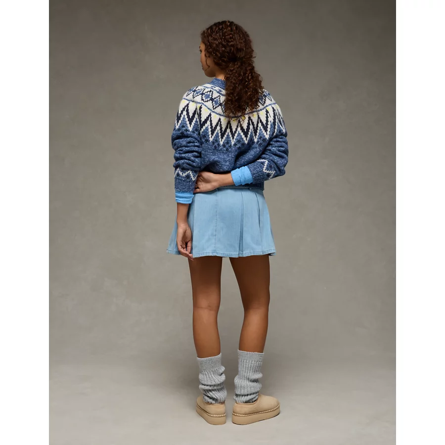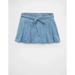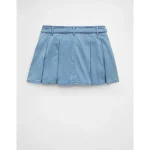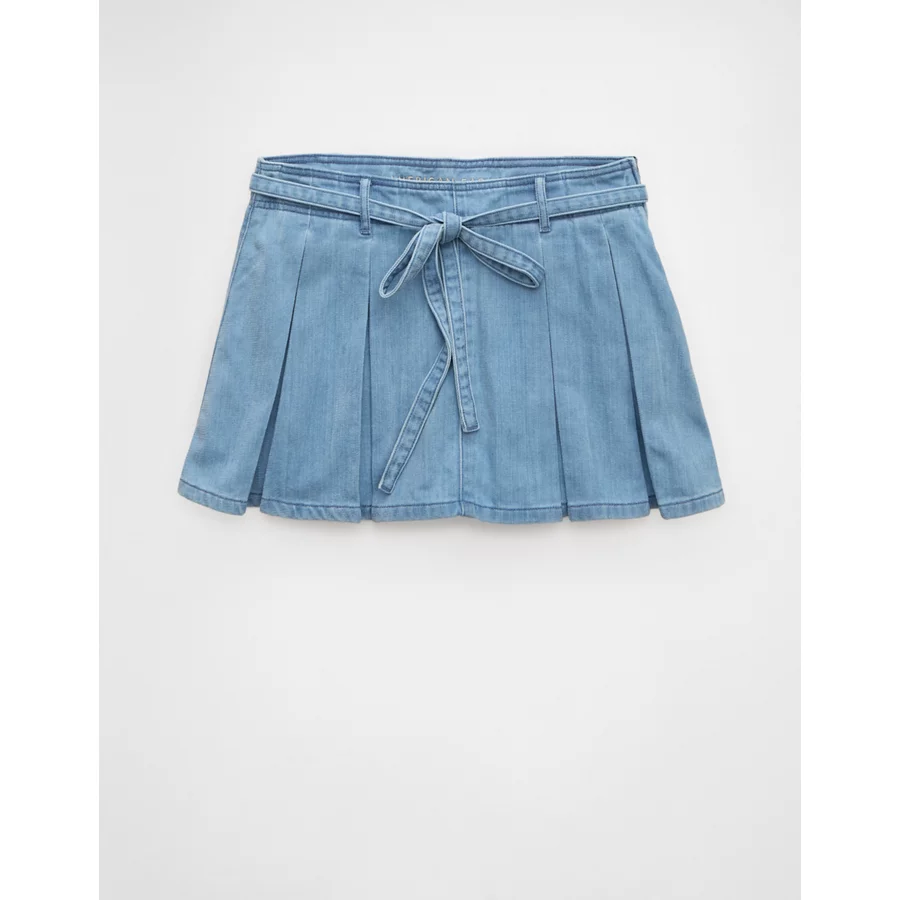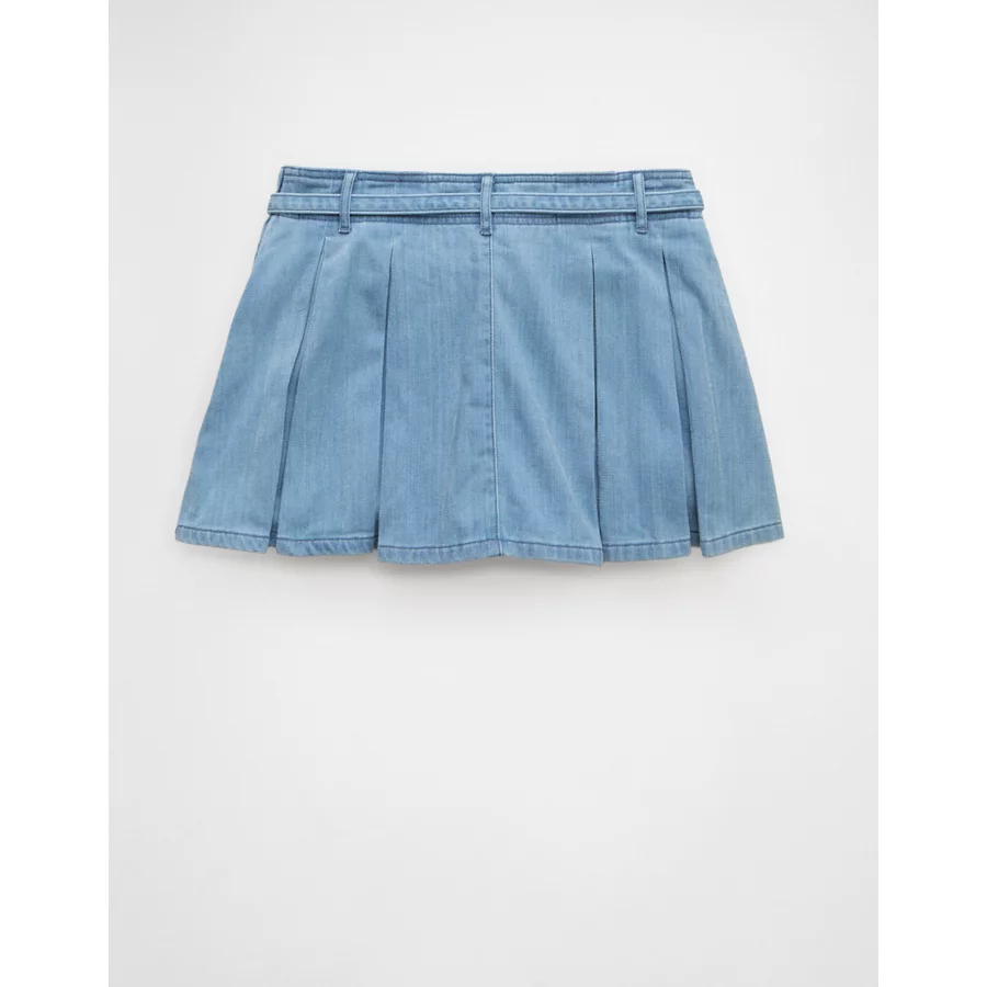 AE High-Waisted Pleated Mini Skirt – Light Wash