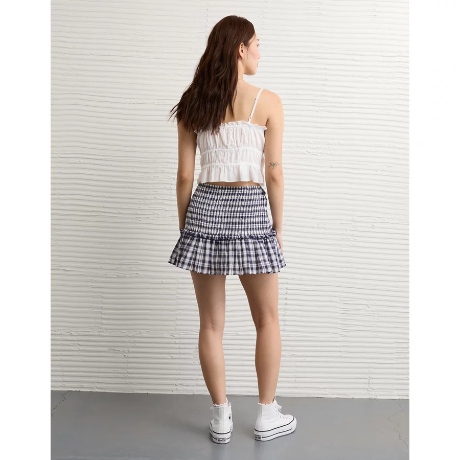 AE High-Waisted Smocked Mini Skirt - Light Blue