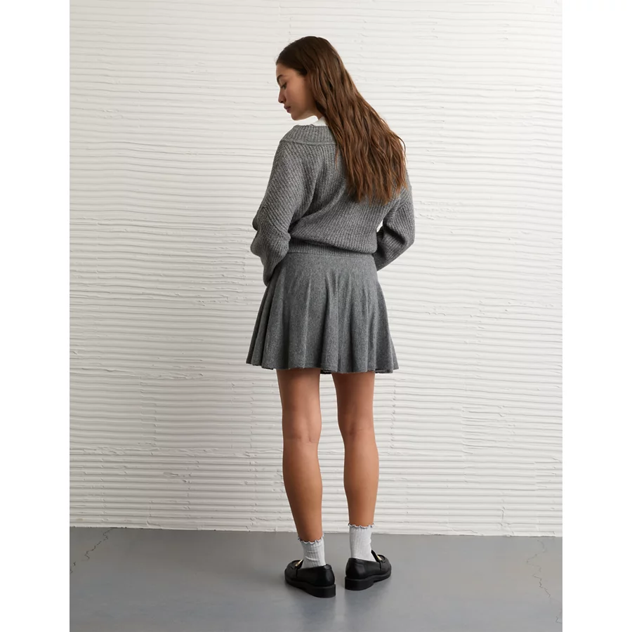 AE High-Waisted Sweater Mini Skort – Charcoal Heather Gray