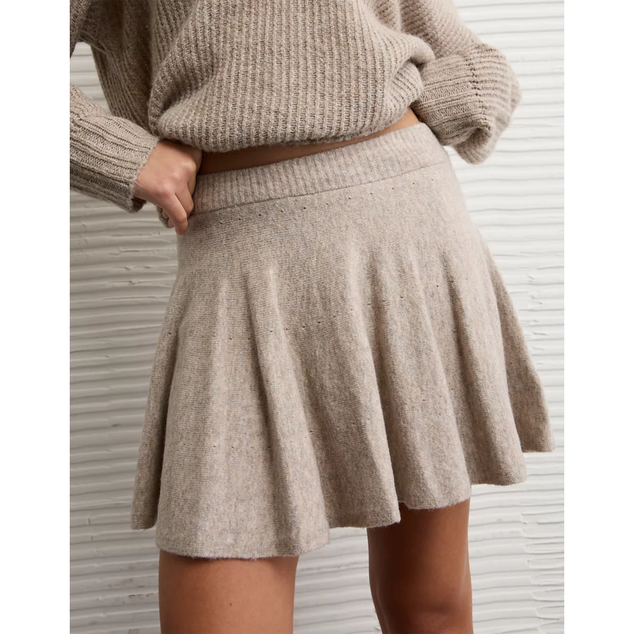 AE High-Waisted Sweater Mini Skort – Tan