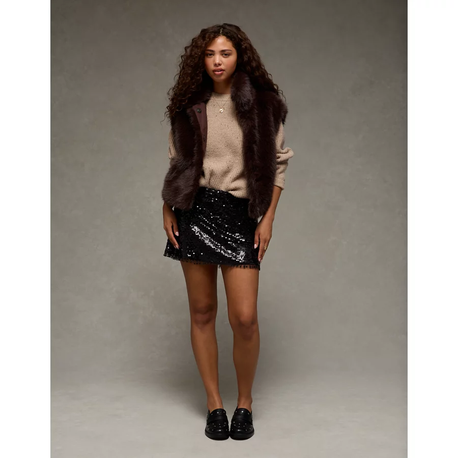 AE It Knit Sequined Mini Slit Skort – Silver Shadow