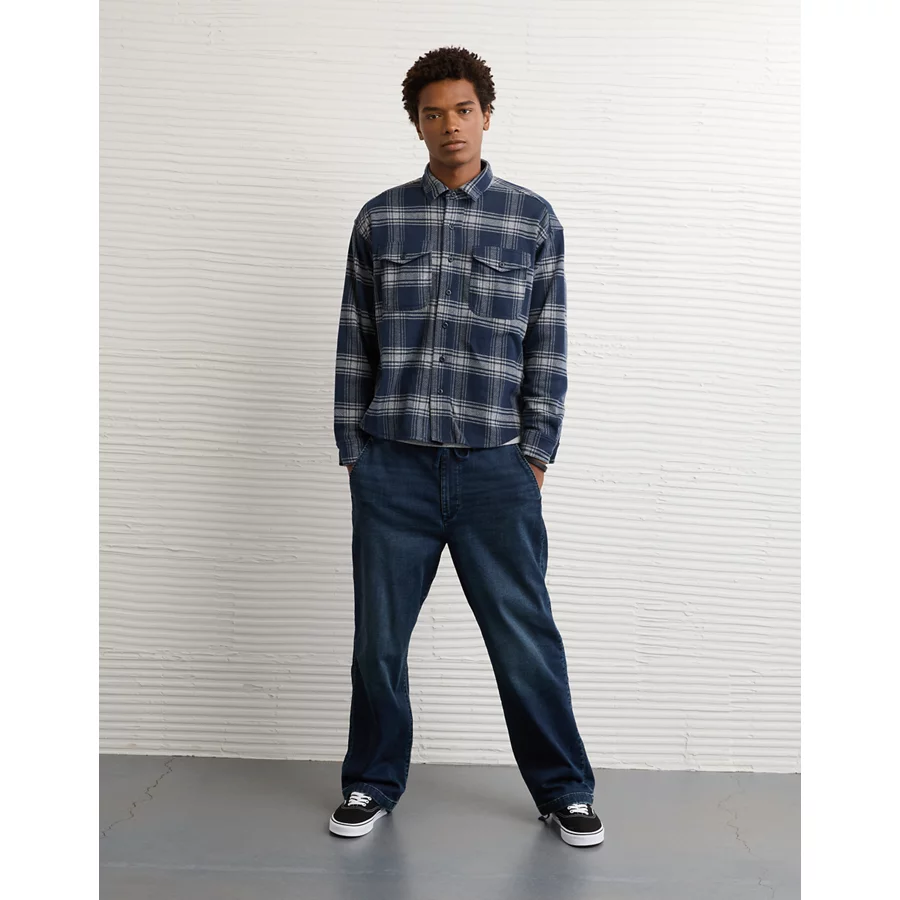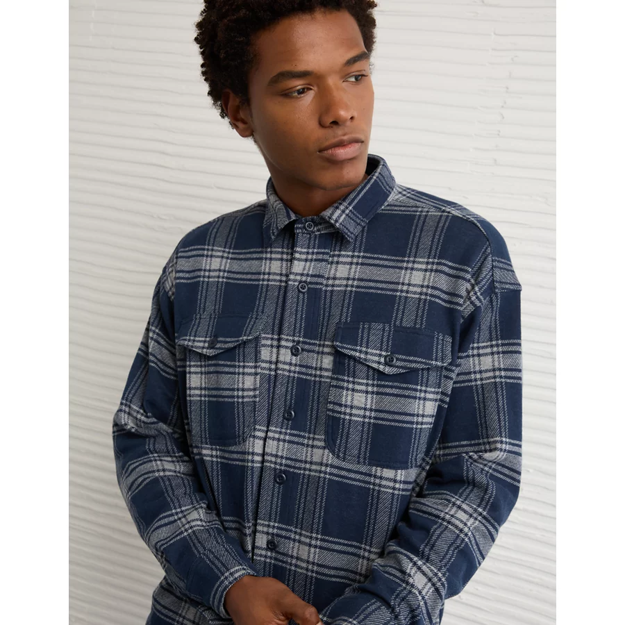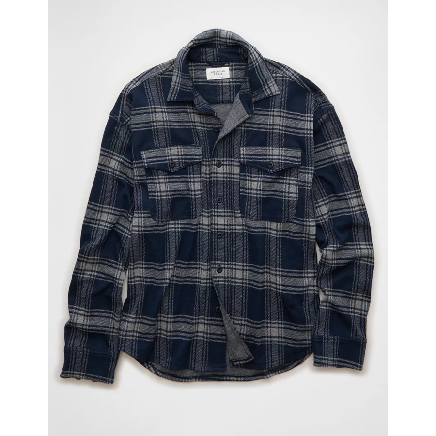 AE Knit Button-Up Shirt – Navy