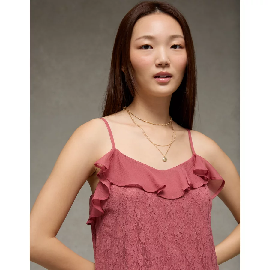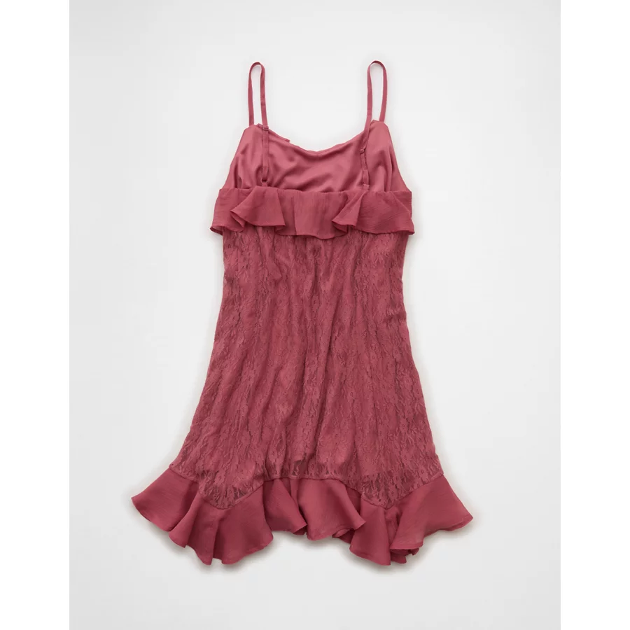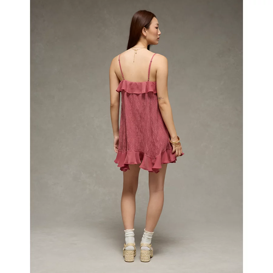 AE Lace Handkerchief Hem Ruffle Mini Dress – Mauve