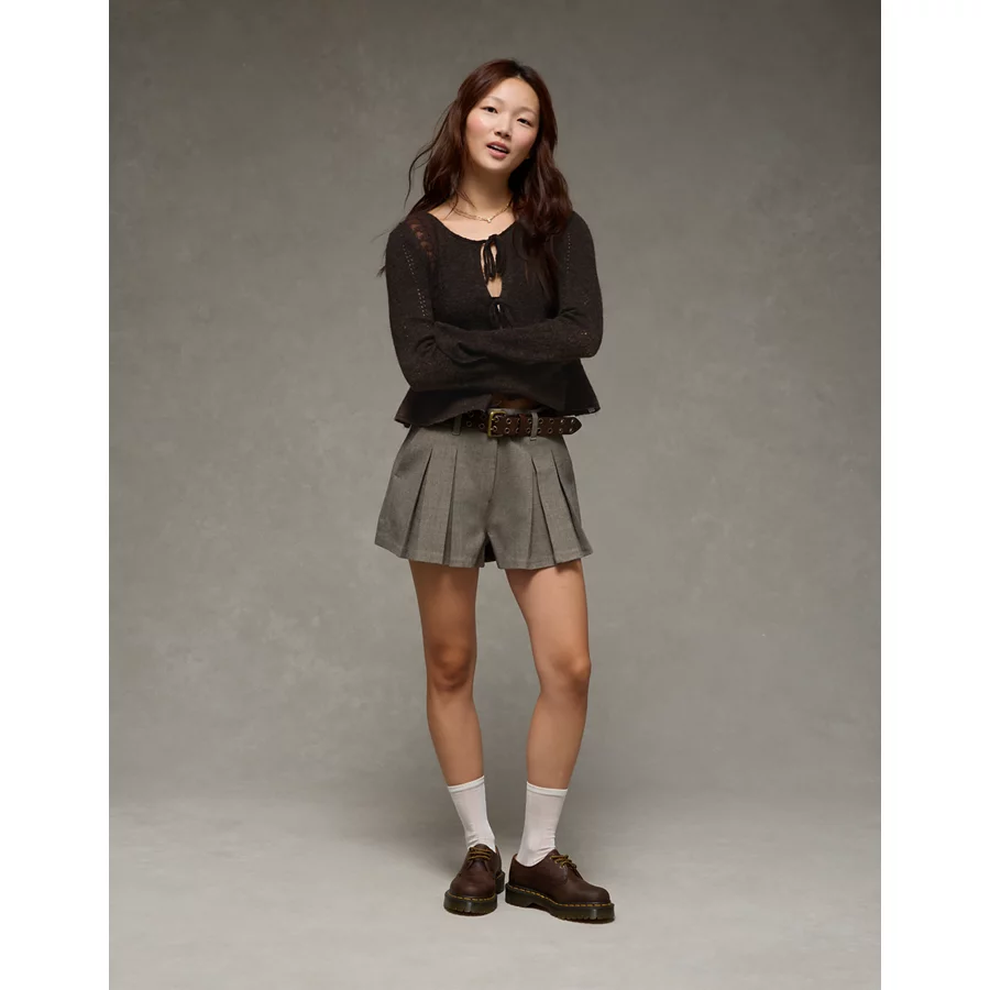 AE Lace Knit Tie-Front Cardigan - Oatmeal Heather